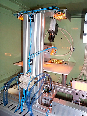 The first inspection area check makes sure the timer have been loaded correctly and then proceeds to perform a cosmetic check.The cosmetic check makes sure we have the correct model by looking at the part number and the providers logo. It then check all of the surfaces for print quality and any blemishes. If any of these fail the functional check is skipped and the timer is placed into the rejection chute.