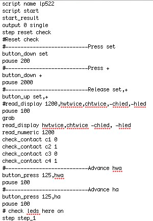 At each stage the display is read and the voltages and the voltages on the contacts measured, all controlled by the script.