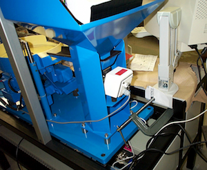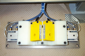 The yellow devices in the picture are the inductive counters that verify that the fuse has dropped down the correct chute.